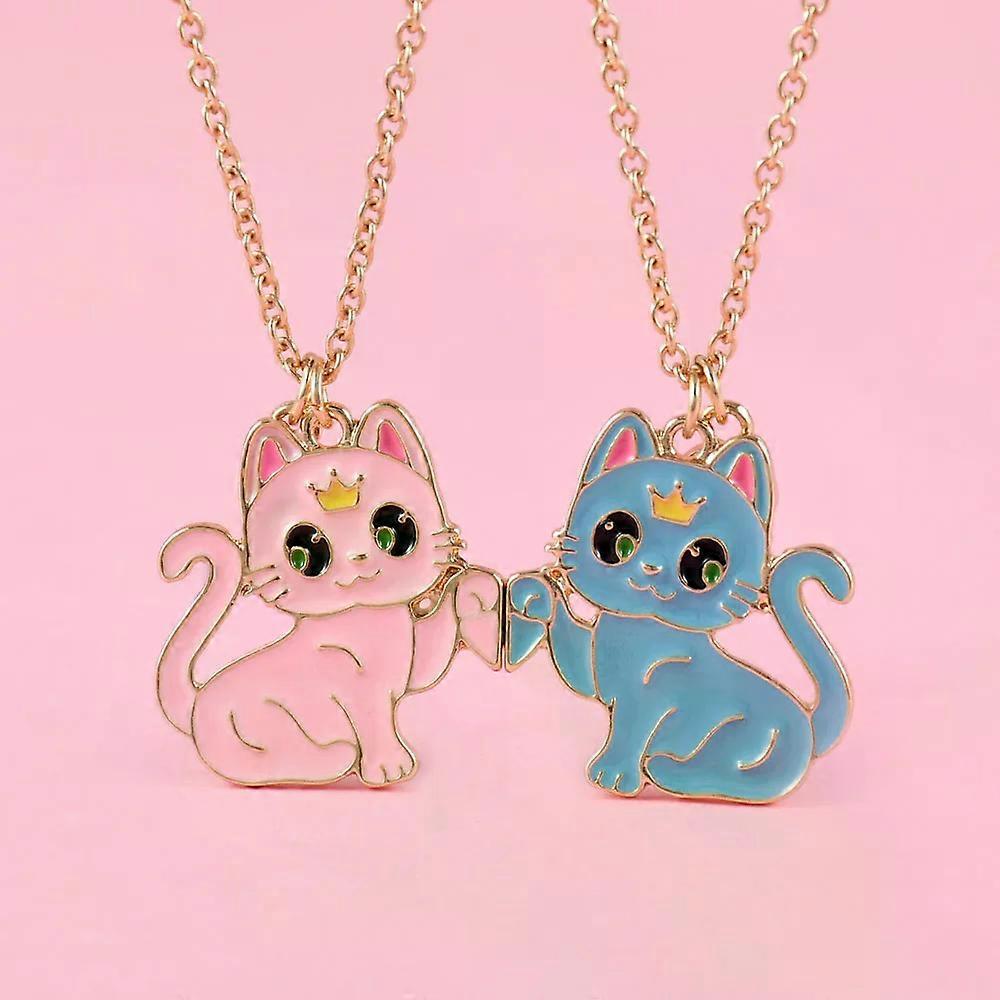 Luoluo&baby 2Pcs/set Cartoon Animal Alloy Cat Best Friend Necklace for Kids Girls Fashion Friendship Gifts