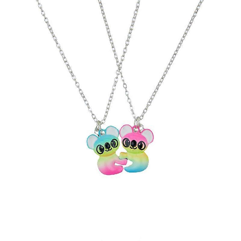 Luoluo&baby Cute Colorful Raccoon Shape Pendant Chain Best Friends Necklace BFF Friendship Children's Jewelry Gift for Girls