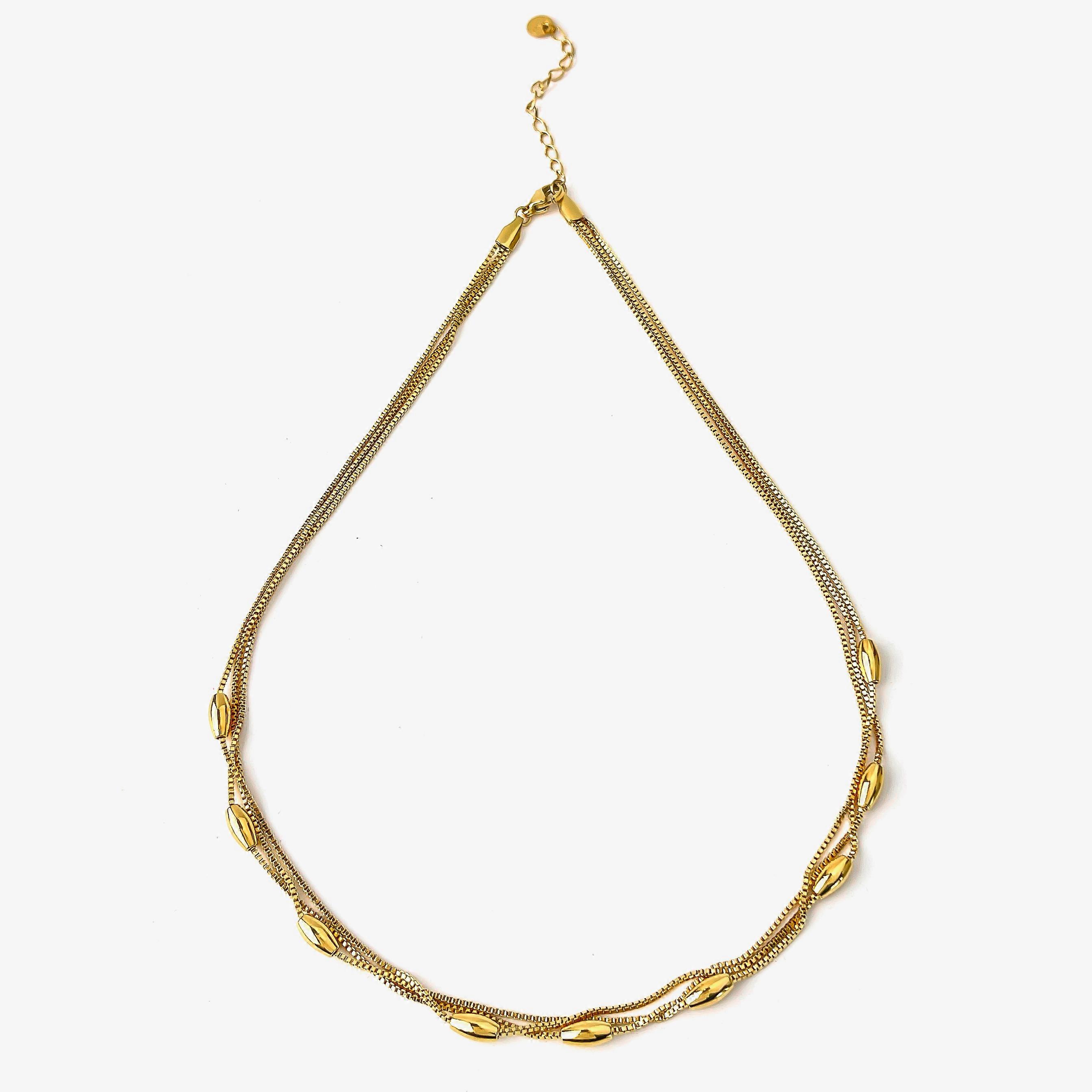 Peri'sbox Dainty Triple Layered Clavicle Chain Oval Beads Necklace Unique Design Stainless Steel Waterproof Trendy Women Jewelry