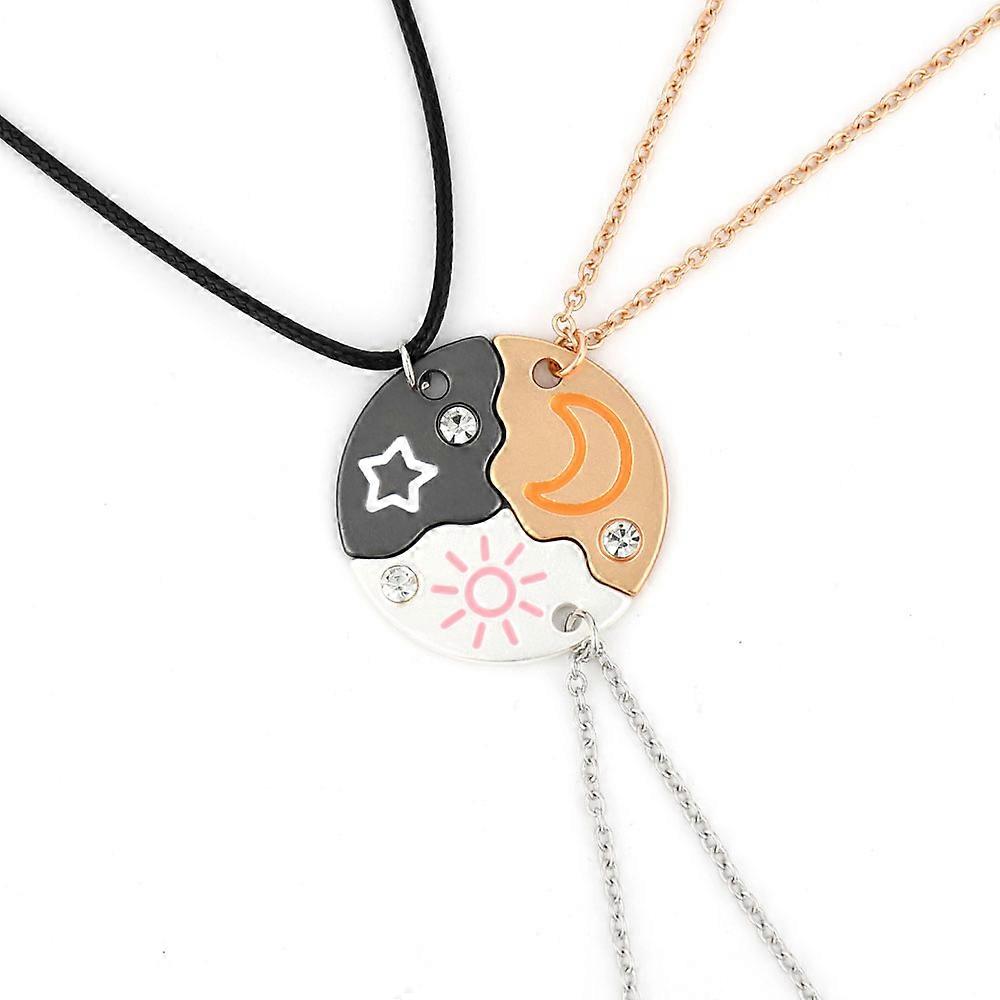 Elviragirl 3Pcs/set Sun Moon Star Pendant Necklace for Girl Kids Friendship BFF Necklaces Best Friend Jewelry Gifts