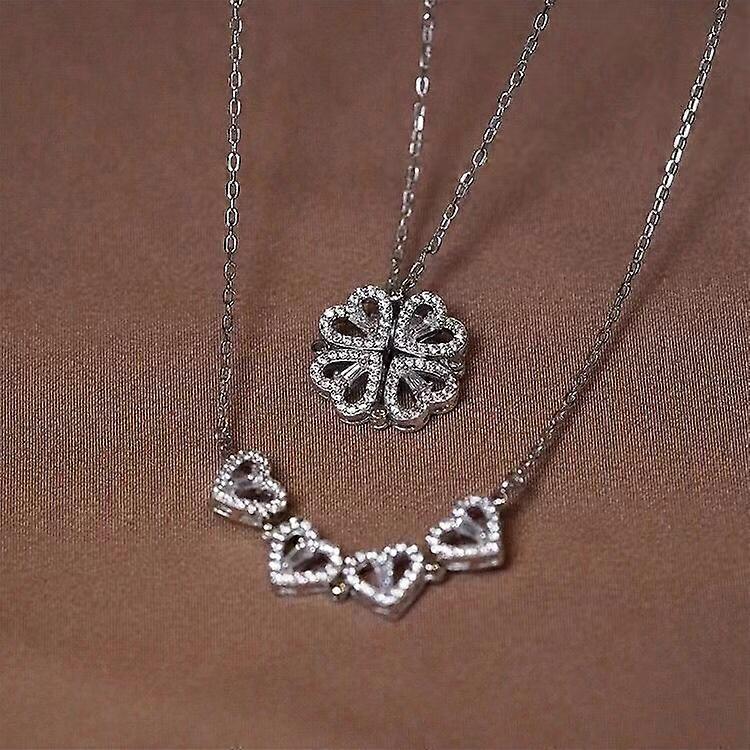 Classic 4-leaf Grass Heart-shaped Necklace For Women Fashion Silver Color Gold Color Metal Pendant Anniversary Jewelry