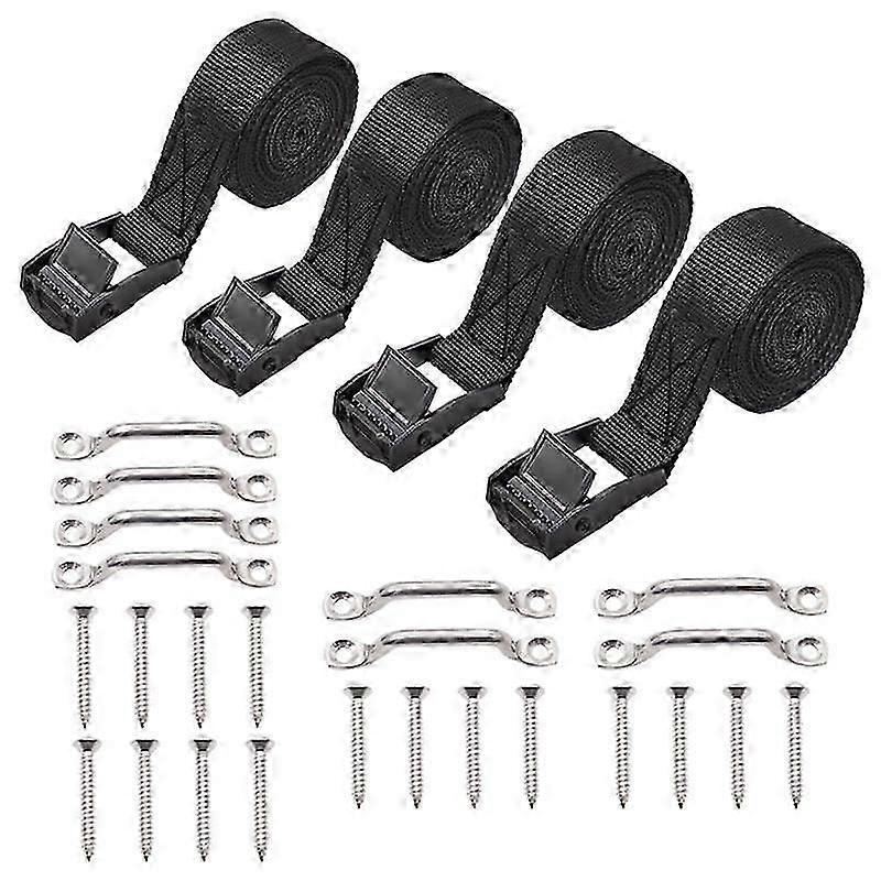 1Inch x 4Ft Battery Tie Down Strap Kit with Stainless Steel Cam Buckle, Bracket and Screws suitable for Boats, Luggage Belt, Cars