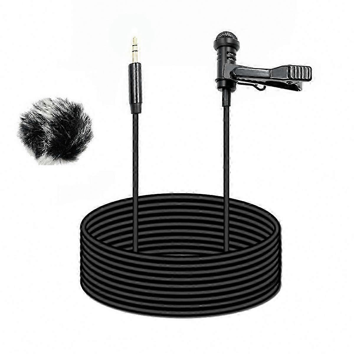 3.5mm Lavalier Microphone with Wind Muff, Clip-on Lapel Mic for DSLR, Camera, Phone, PC