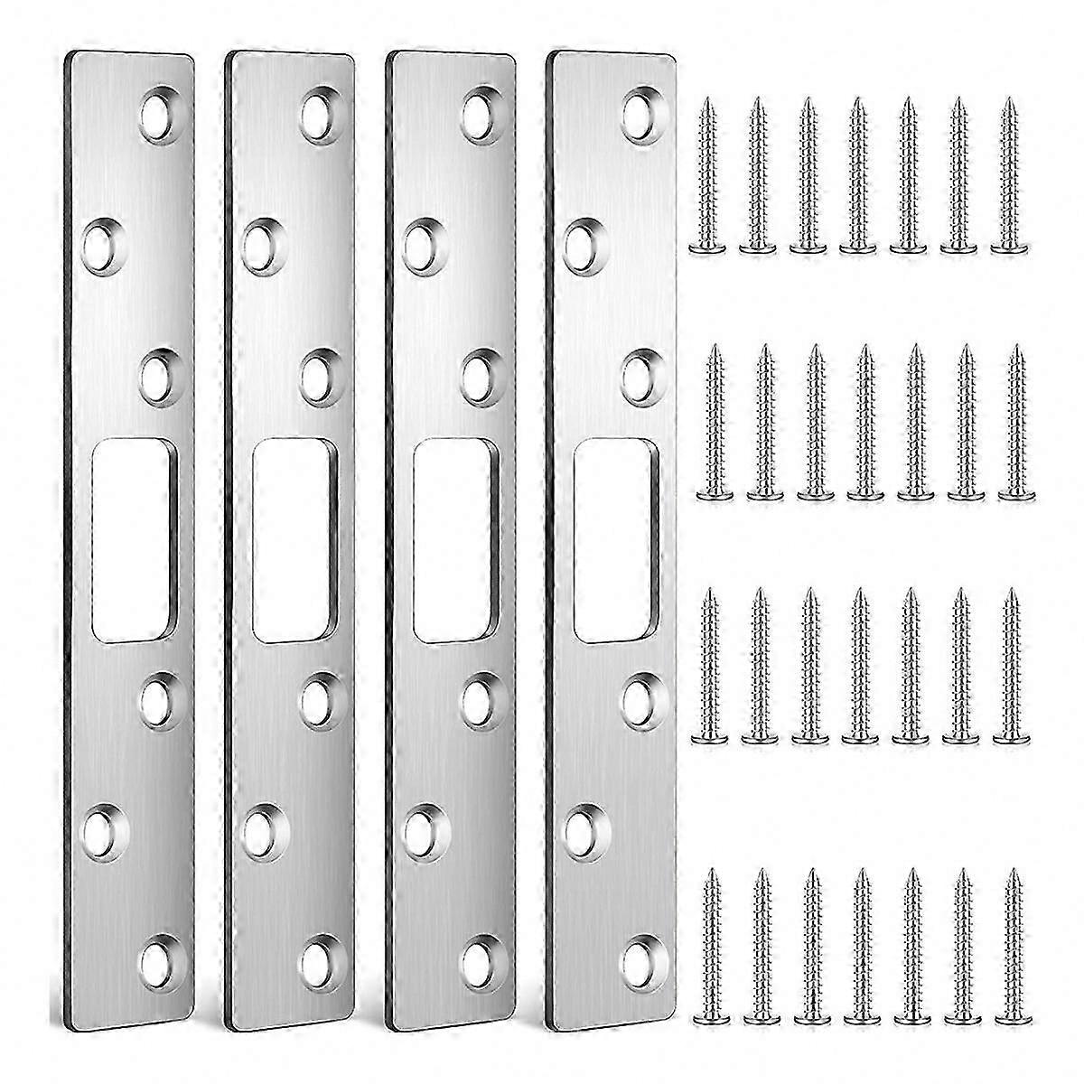 What You Will Get: you will get 4 pieces of strike plates for doors, which are available in silver, each plate also is equipped with 6 screws, the screws can help you to fix plates better, you can use the plates on the most doors you want. Proper Size: our door security tools measure about 6 x 1 x 0.08 inches/15.24 x 2.54 x 0.2 cm, which are moderate and proper, suitable for many kinds of doors, please note that you had better to measure the size of baffle, cross hole, door's thickness before ordering. Sturdy and Hard: our door deadbolt strike plate is made of quality stainless steel, durable and reliable, waterproof and rust proof, no worry about that it would be easy to rust or break, serving you for a long time. Easy to Install: the door lock plate is convenient and easy for you to install, you just need to align this deadbolt with the door, find the right position, and use a screwdriver to screw the door frame, and installation is complete. Secure Your Door's Safety: the door reinforcement plate can be applied to improve the security of your door, making it not easy to broken into, improving the safety of your house, bringing you a safer living environment. Colour:Silver Material:stainless steel Size:15.2cm Package Contents: 4 * strike plates for doors 1 bag * screws Only the above package content, other products are not included. Note: Light reflection and different displays may cause the color of the item in the picture a little different from the real thing. The measurement allowed error is +/- 1-3cm.