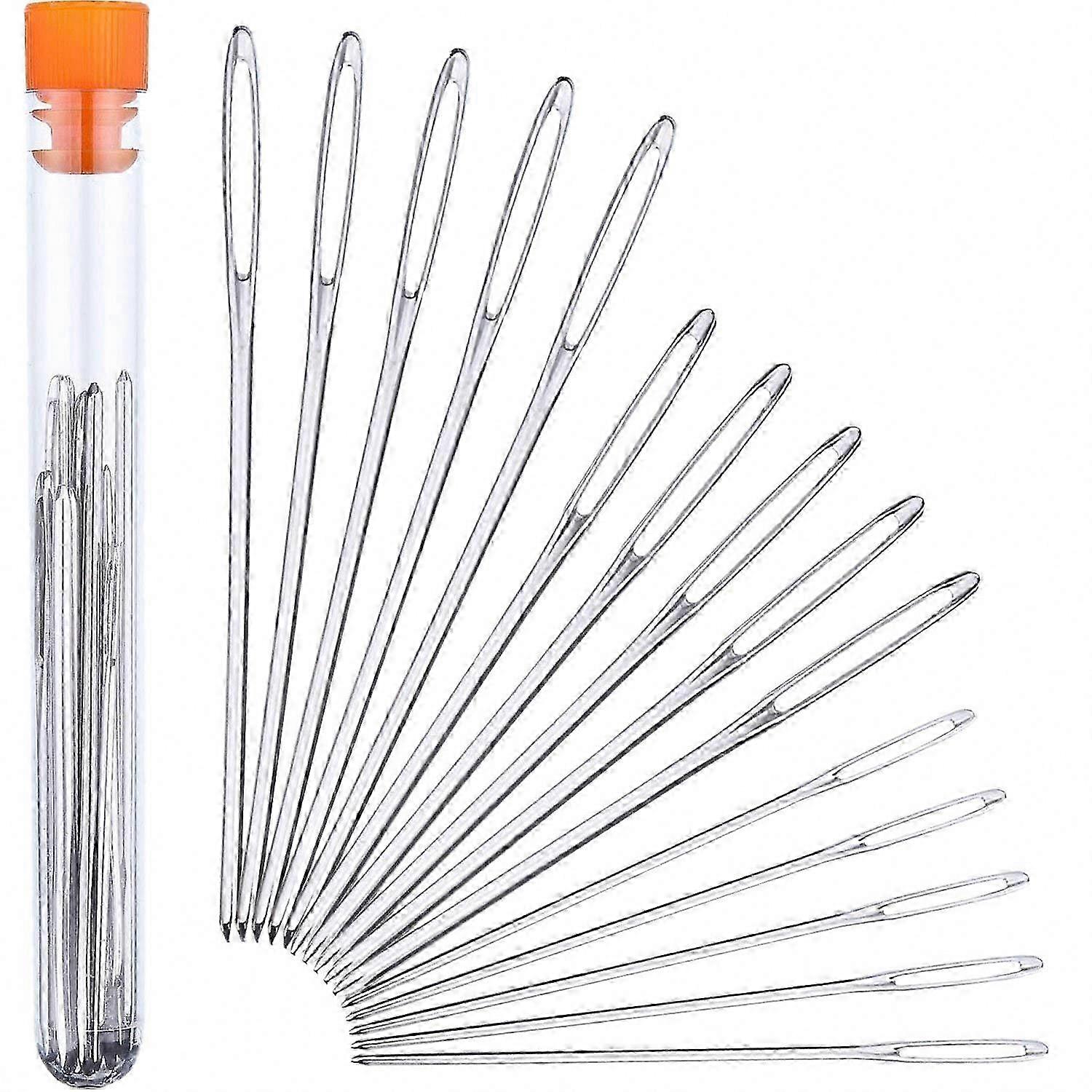 15-Piece Blunt Stainless Steel Large-Eye Yarn Knitting Needles, 3 Sizes