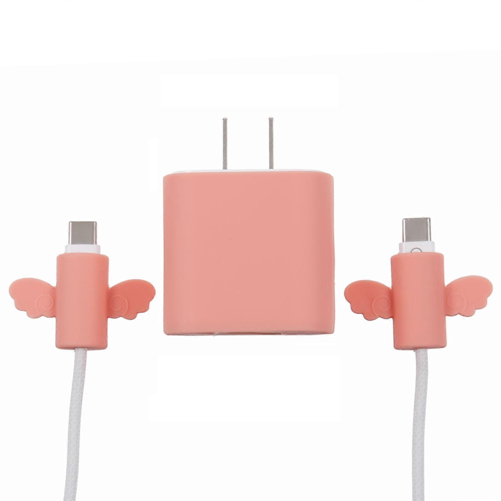 Solid Color Wings Protective Sleeve for Apple iPhone 18/20W Charger Cover + 2Pcs Data Cable Saver Si