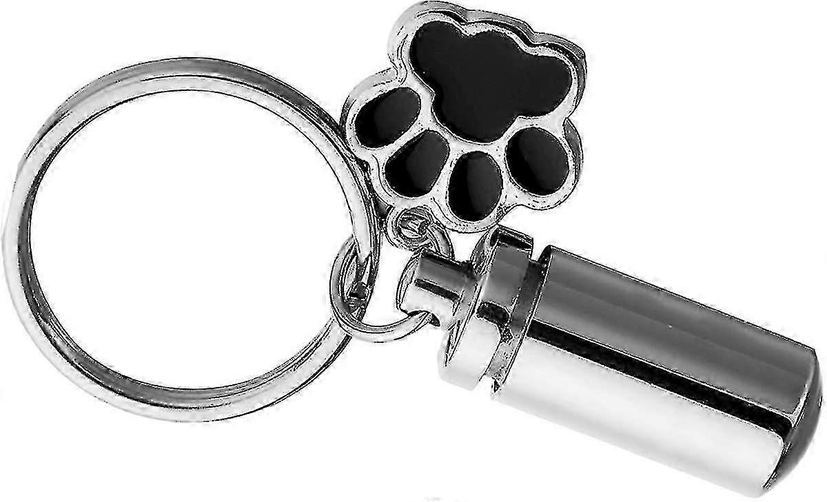 Cremation Urn Keychain, Silver Tone Pet Dog Paw Memorial Ashes Jewelry