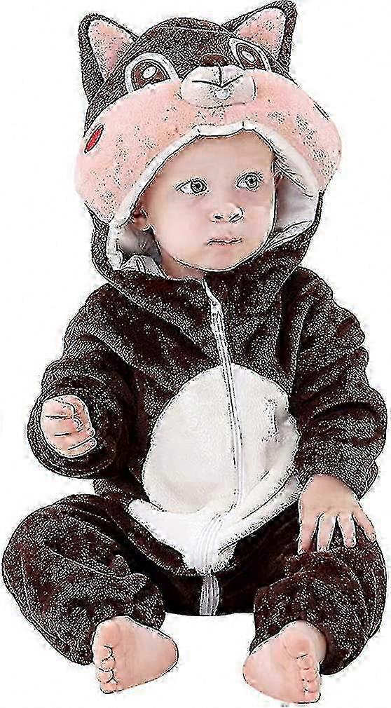 Baby Unisex Hooded Romper Winter Flannel Jumpsuit Cartoon Outfit