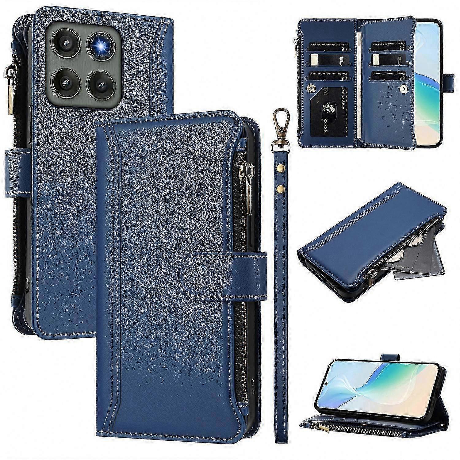 Leather Wallet Case with Zipper and Stand for 5G Phones, 9 Card Slots and Wrist Strap, Compatible with Edge 60 Pro