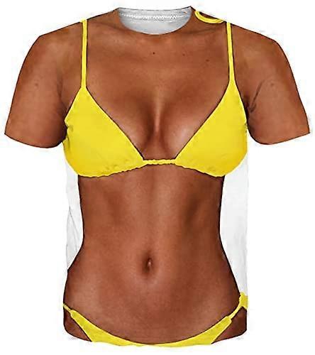Unisex Funny Yellow Bikini 3D Illusion T-Shirt Novelty Graphic Humor Tee Casual Unisex Funny Top
