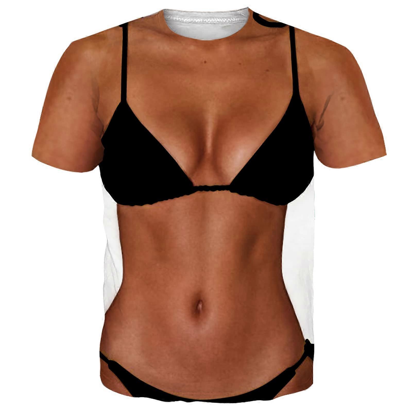 Black Bikini Back Bow 3D Illusion T-Shirt Men’s Novelty Graphic Humor Tee Casual Funny Print Top