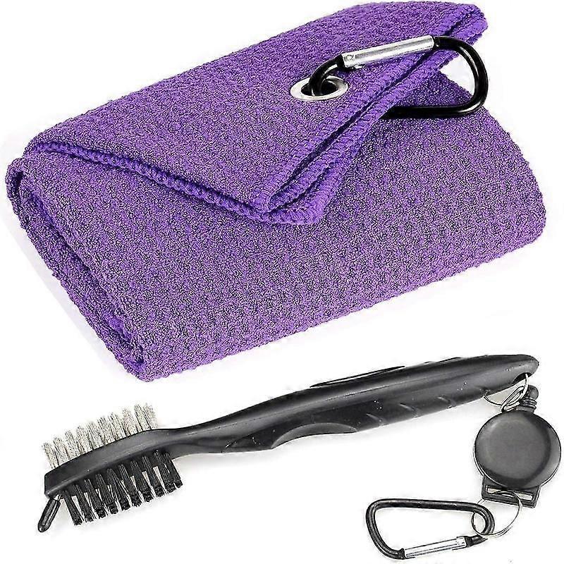 Golf club cleaner kit with tri fold towel and retractable cord