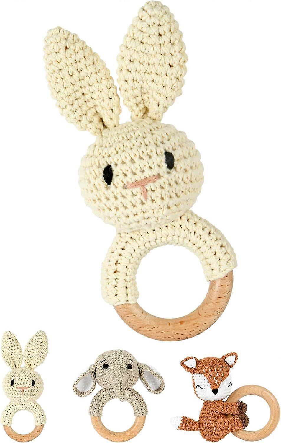 Sonajero de madera de ganchillo hecho a mano de OFFCUP, suave animalito para recin nacidos, nios y nias (conejo)