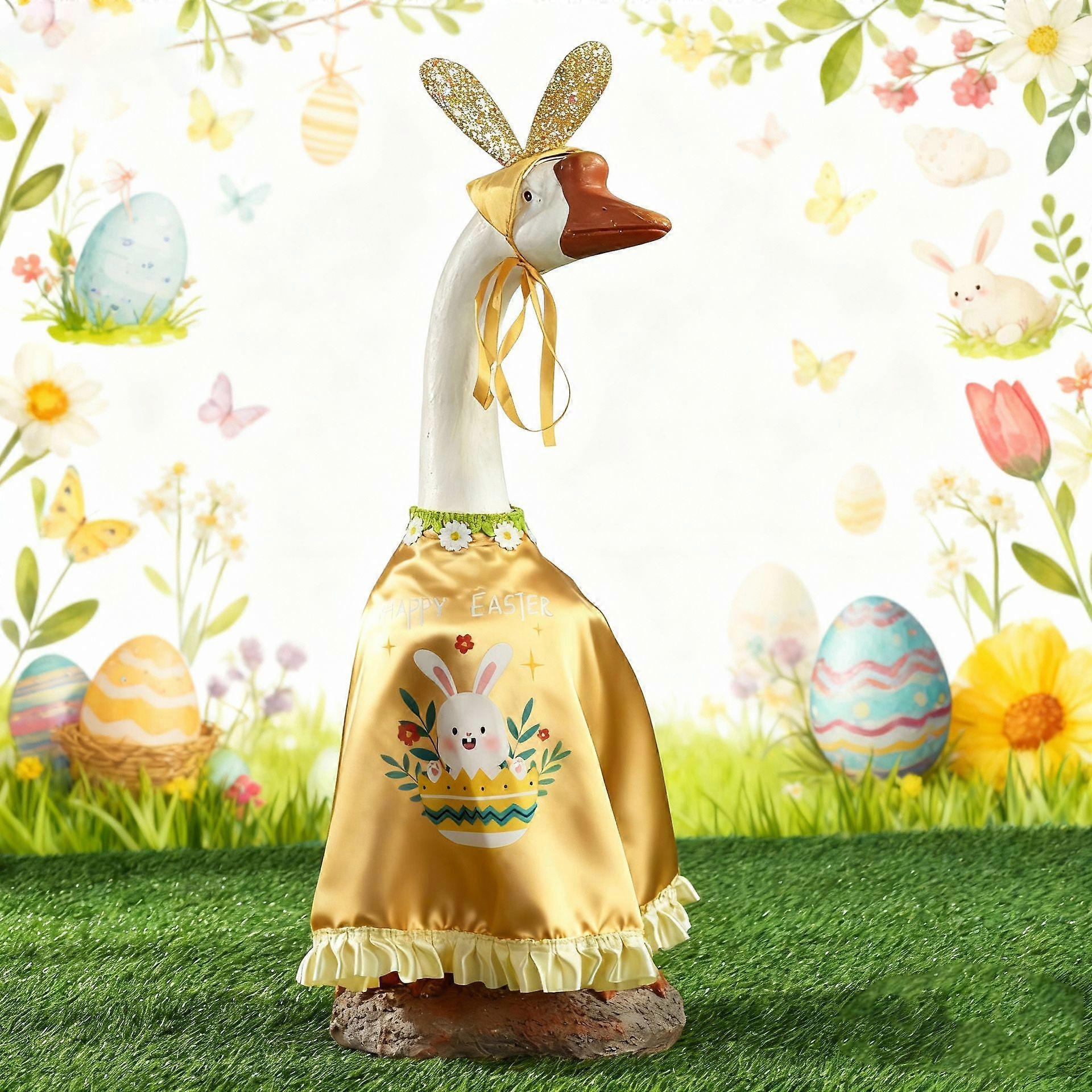 Valentine Goose Outfit Red Porch Goose Dress Heart Bunny Print with Sequin Bow Headband Holiday Lawn Garden Goose Decor Clothes Outdoor Yard Garden De