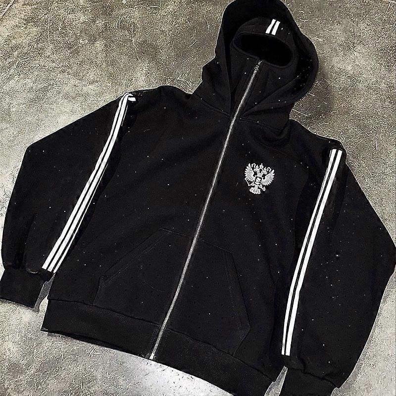 2026 Latest Model Winter/autumn hooded sports sweatshirt with ninja-style hooded cap and printed pattern. Double-capped design.