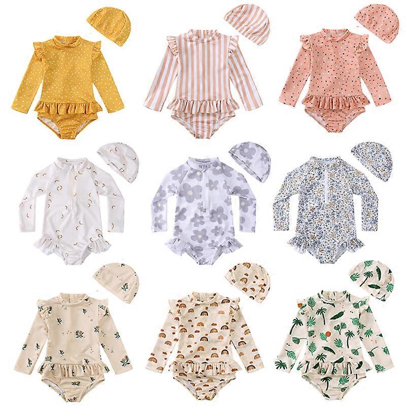 UV Baby Girl Swimsuit One Piece Swimming Jumpsuit Ruffles Bathing Suit SPF 50 Long Sleeve Kids Swimwear for Boys 1-7 Years