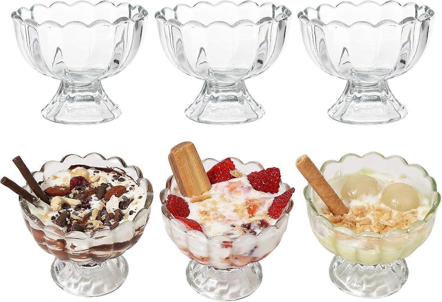 Milkshake Glasses, 120ml Ice Cream Cups, 6pcs Lead Free Footed Glass Dessert Dishes, Ice Cream Sundae Dessert Milk Shake Cups, Soda Fountain Glasses
