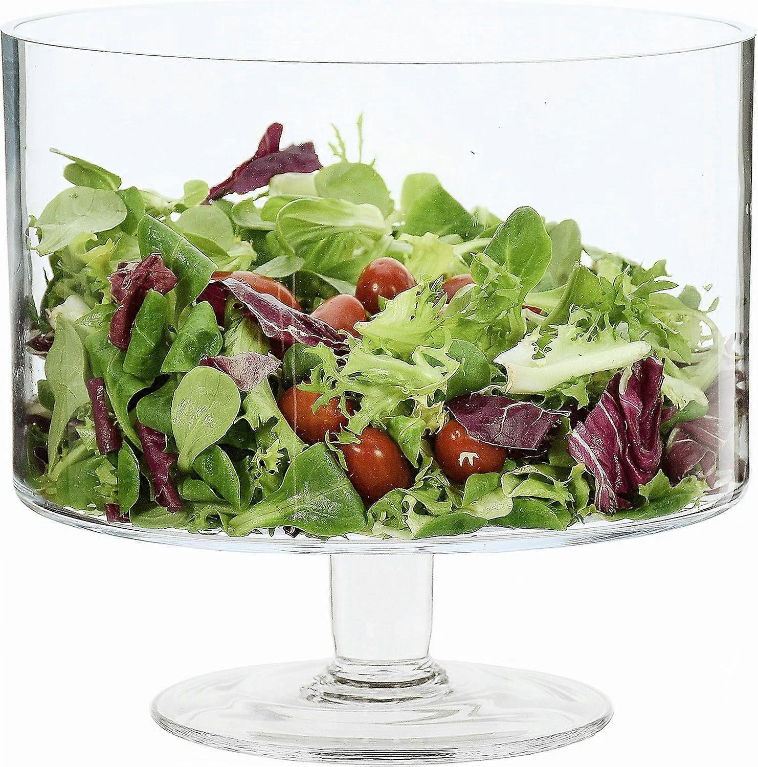 Clear Glass Hand Crafted Cylinder Footed Fruit Bowl Kitchen Holder Gift H22cm D20.5cm 3.5L