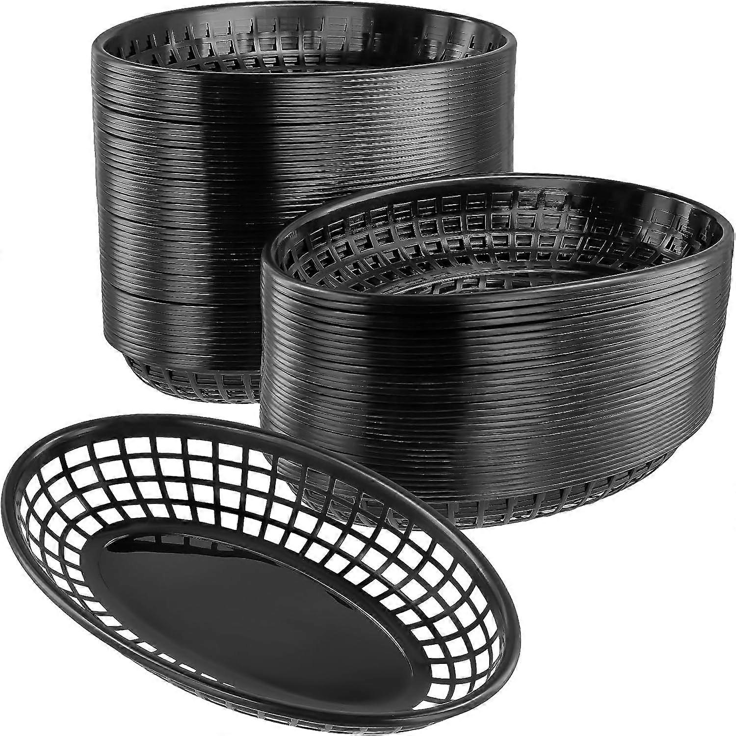 80 PCS Black Fast Food Baskets, 23cm Plastic Oval Burger Basket for Fries Chip, Sandwiches, Picnics Party