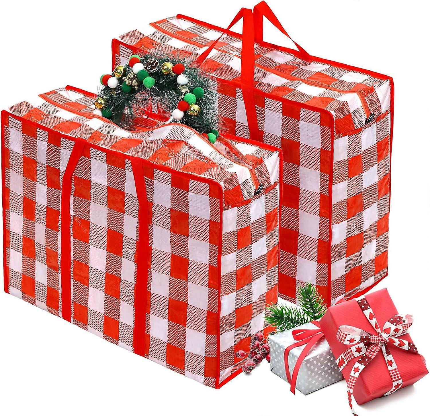Reliable Material: the gift bag storage organizer is made of quality knitting material, safe, waterproof, moisture proof, and dust proof, providing protection to your items, convenient to store and use, bringing you a smooth and comfortable using experience.Our Christmas storage bag can hold about 10 kg, so you can safely store your Christmas decorations<br>Delicate Design: the gift wrapping organizer storage bag is equipped with double end zipper design, sturdy and safe, double handle design for you to easy carry and storage; Designed with check patterns, classic, exquisite and vivid, which is sure to win your preference; The zipper design make open and close the Christmas storage bag easily<br>Extra large storage bags: the size of each Christmas wrapping paper storage is 68 x 50 x 24 cm/ 27 x 20 x 9.5 inches; Not only do you use it to store Christmas decorations, but you can also use this storage bag when moving<br>Wide Christmas Usages: the Xmas tree storage bag is full of Christmas atmosphere, which can be applied on different occasions of Christmas, and large size suitable for storing most Christmas items, such as your Christmas tree, Christmas gift, Christmas toy, ornaments, and more, add colorful atmosphere for your Christmas<br>Package Content: you will receive 2 pieces of Christmas storage bags, designed with classic Christmas elements patterns to meet your organization and decoration needs, making your home more neat; You can also share them with your friends or family members
