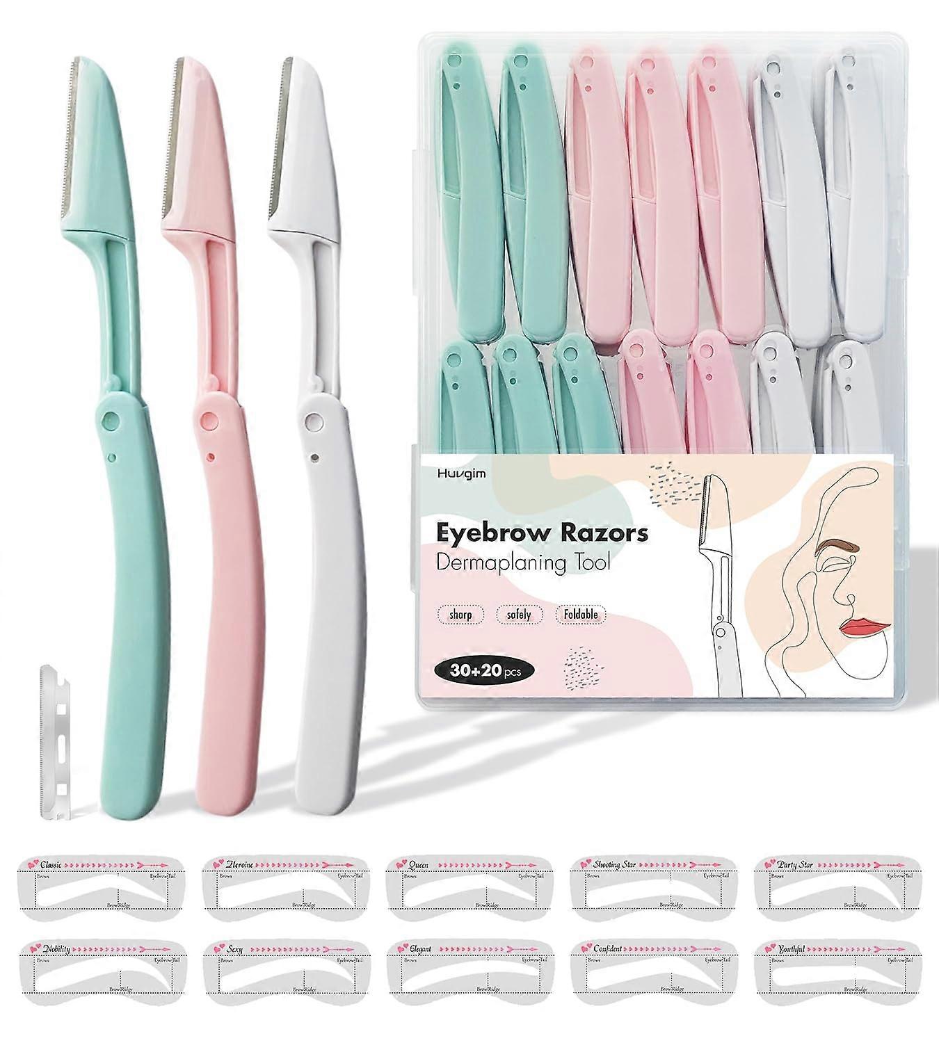 Dermaplaning Tool - Dermaplane Razor for Face, for Women and Men, That Helps Exfoliate and Peach Fuzz - Smooth the Skin, 30 Pcs Foldable Eyebrow Razor