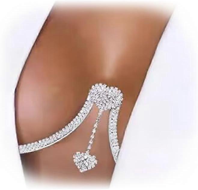 Rhinestone Chest Bracket Chain Trendy Crystal Heart Pendant Bra Chain y Bikini Body Chain Jewelry for Women Silver