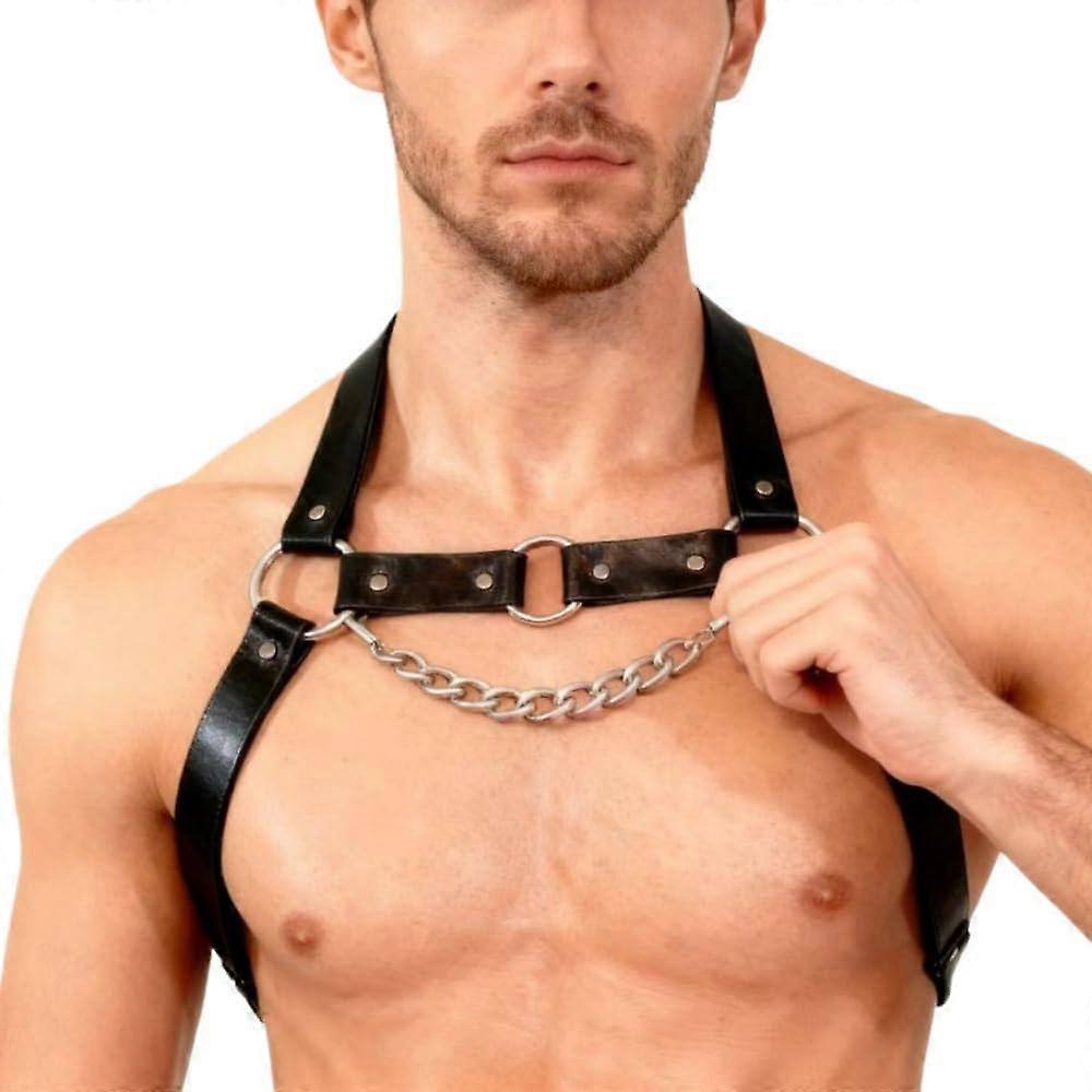 Men's y PU Leather Metal Chain Chest Harness Punk Gay Harness SM Cosplay Halloween Accessories Black One Size