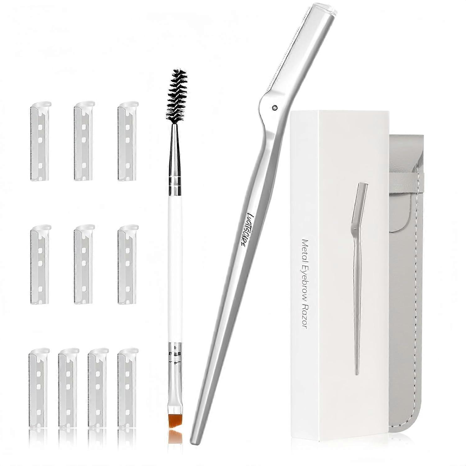 Stainless Steel Eyebrow Razor - Face Razors with Travel Cover & 10 Refill Blades, Eyebrow Brush - Help Exfoliate and Smooth Skin for Eyebrow, Leg, BIK