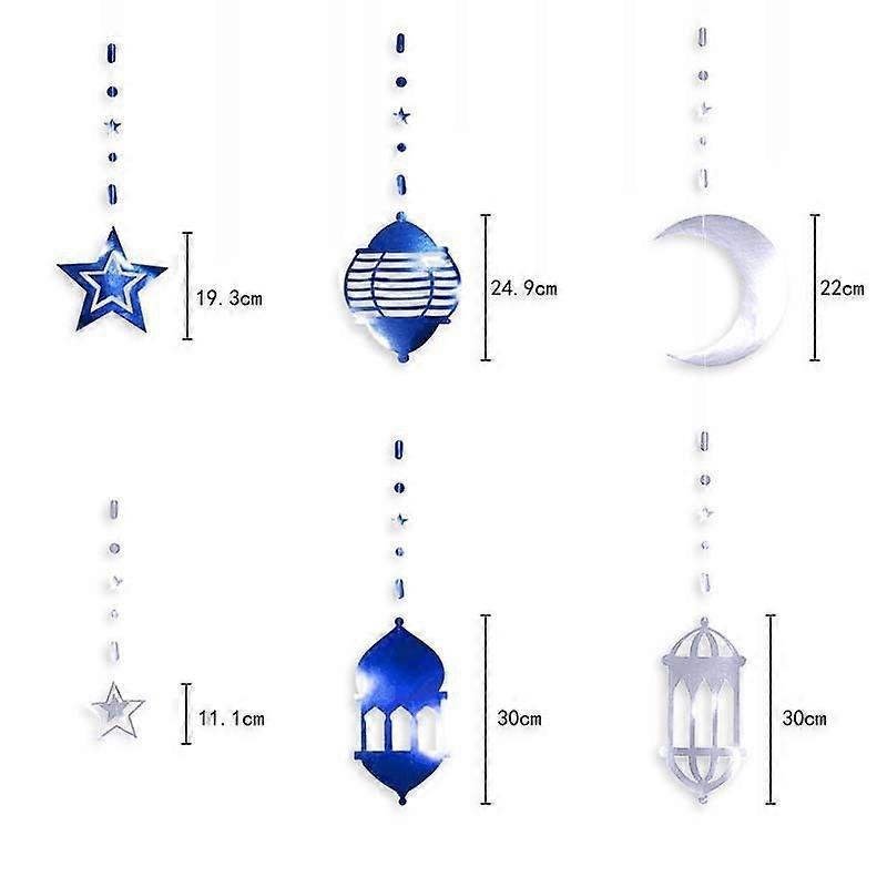 Home Eid Al-Fitr Decorations Wall Decorations Moon, Star, And Crescent Lanterns With Ribbons Hanging Ornaments, Tassels, Backdrop Flags Holographic Ei
