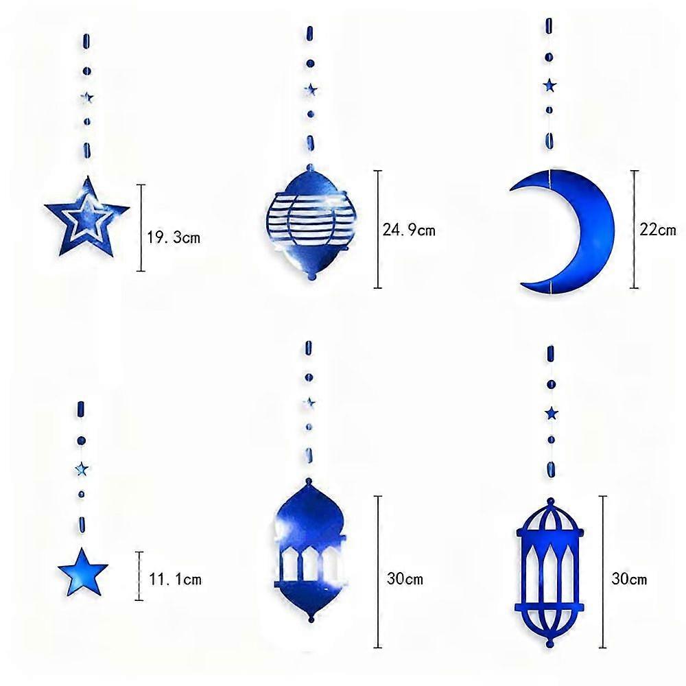 Home Eid Al-Fitr Decorations Wall Decorations Moon, Star, And Crescent Lanterns With Ribbons Hanging Ornaments, Tassels, Backdrop Flags Holographic Ei