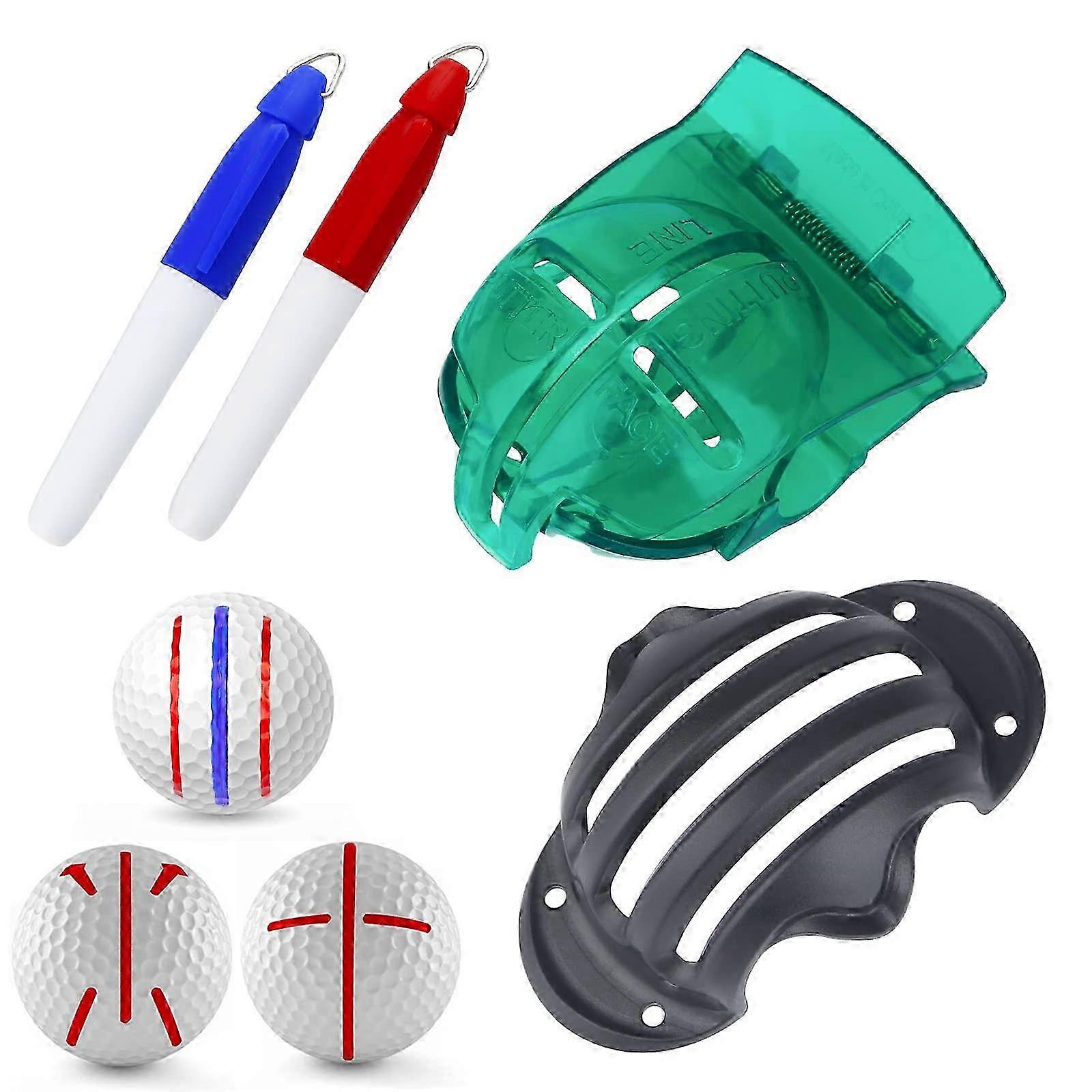 25-26 Golf Ball Liner Tri-Line Golf Alignment Kit with Marker Pen Triple Track Putter Stencil Spring Clamp Marking Tools