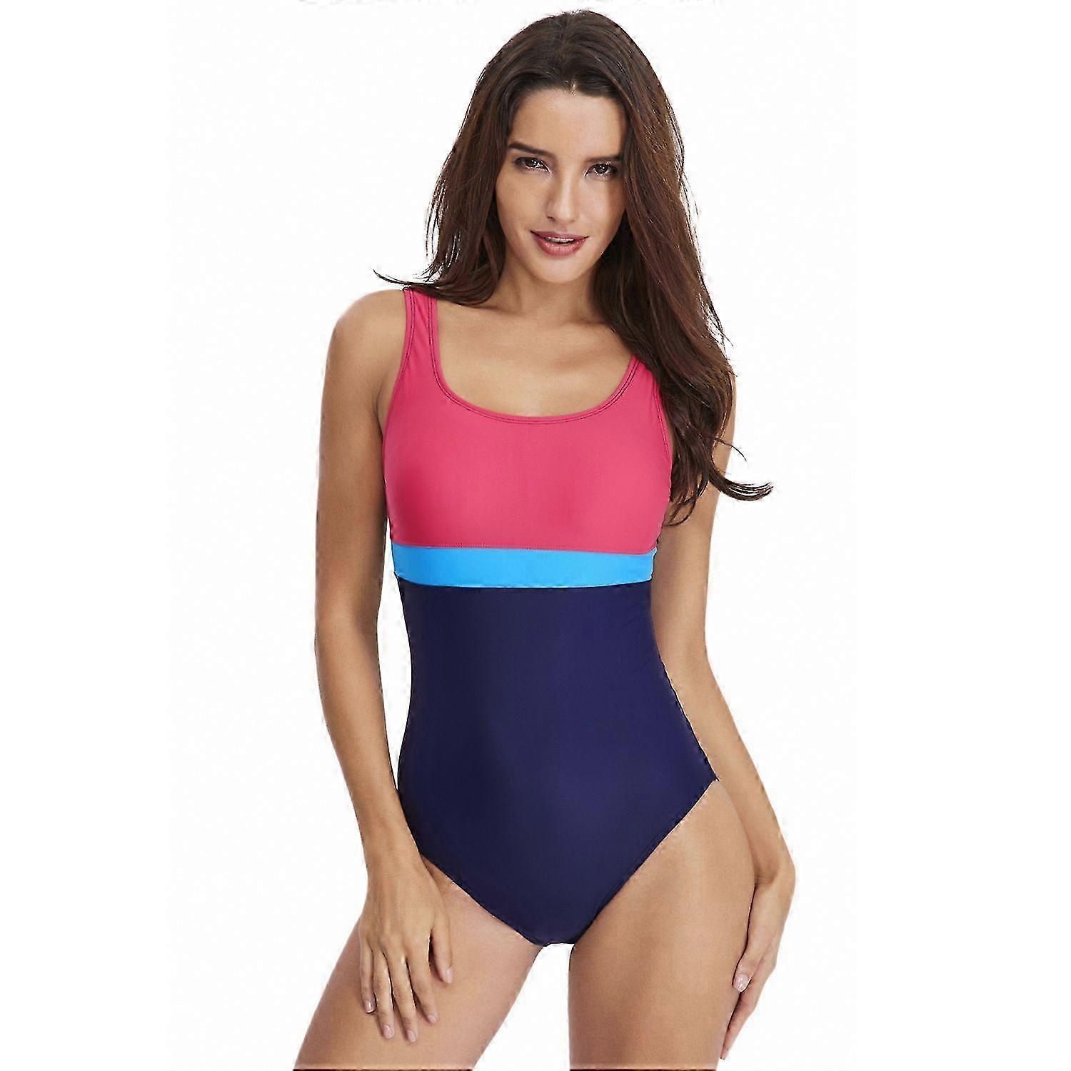 25-26 Womens One-Piece Swimsuit Sporty Tummy Control Swimwear Scoop Neck Full Coverage