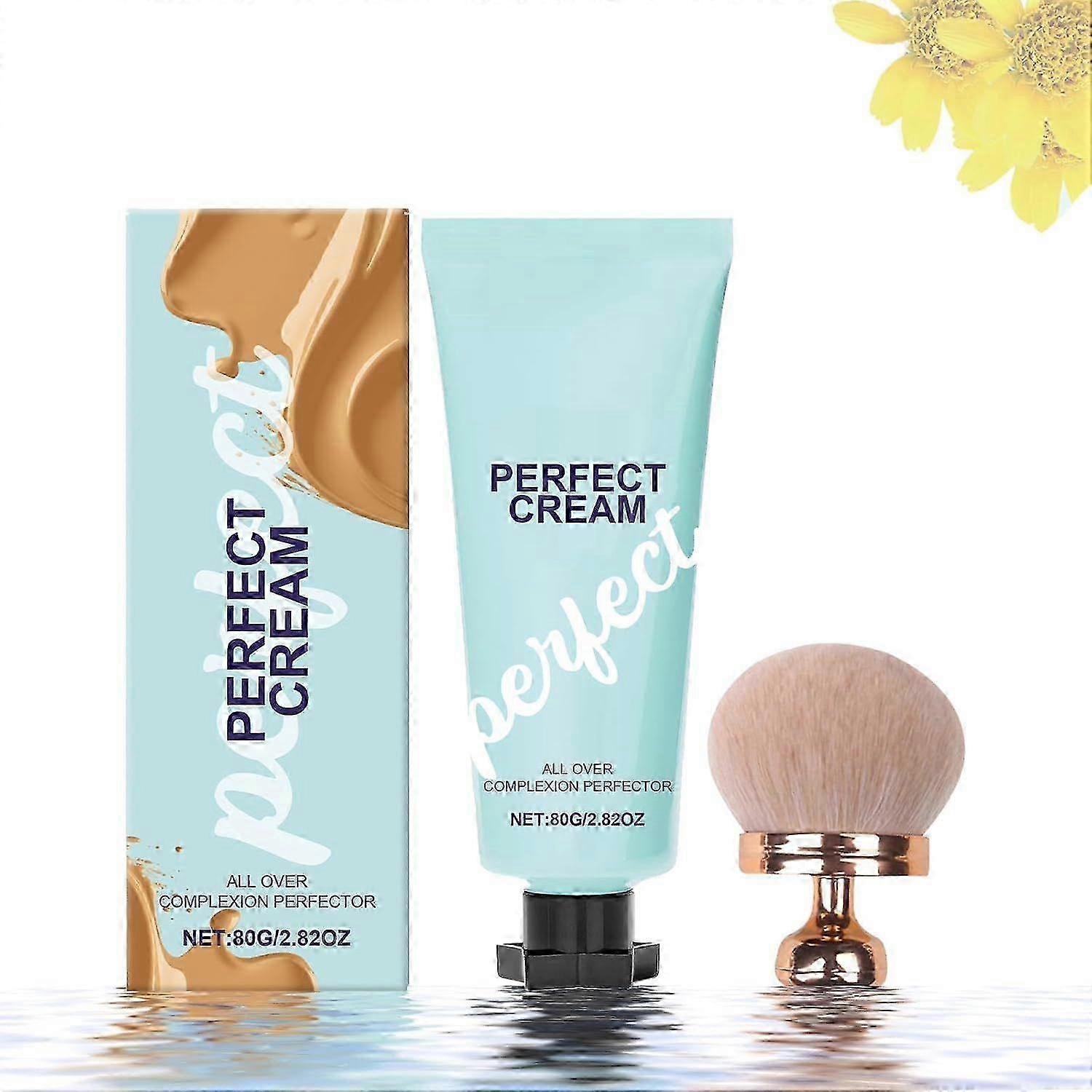 25-26 All-Over Complexion Perfector with Extra Large Body Makeup Brush, Long-Lasting CC Cream Foundation, Waterproof Transfer-Resistant Skin Tint, Cov