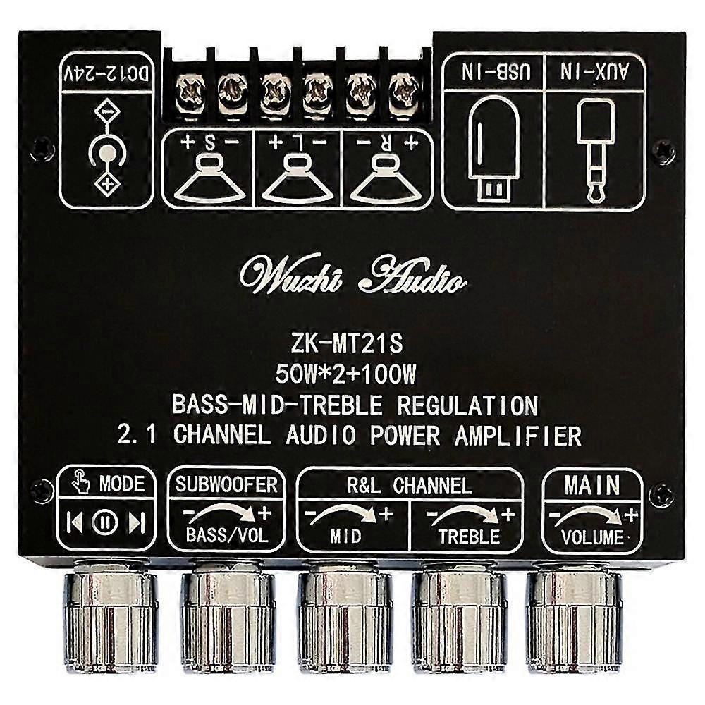 25-26 -mt21s 2x50w+100w 2.1 Channel Subwoofer Digital Amplifier Board Aux 12v 24v Audio Stereo Bluetooth