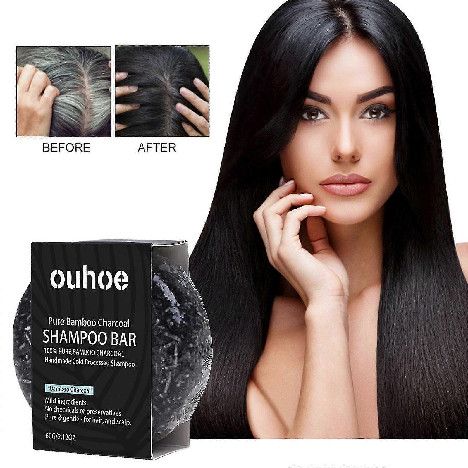 25-26 60g OUHOE Charcoal Shampoo Bar Handmade Cleanser for Shine & Scalp Clarity