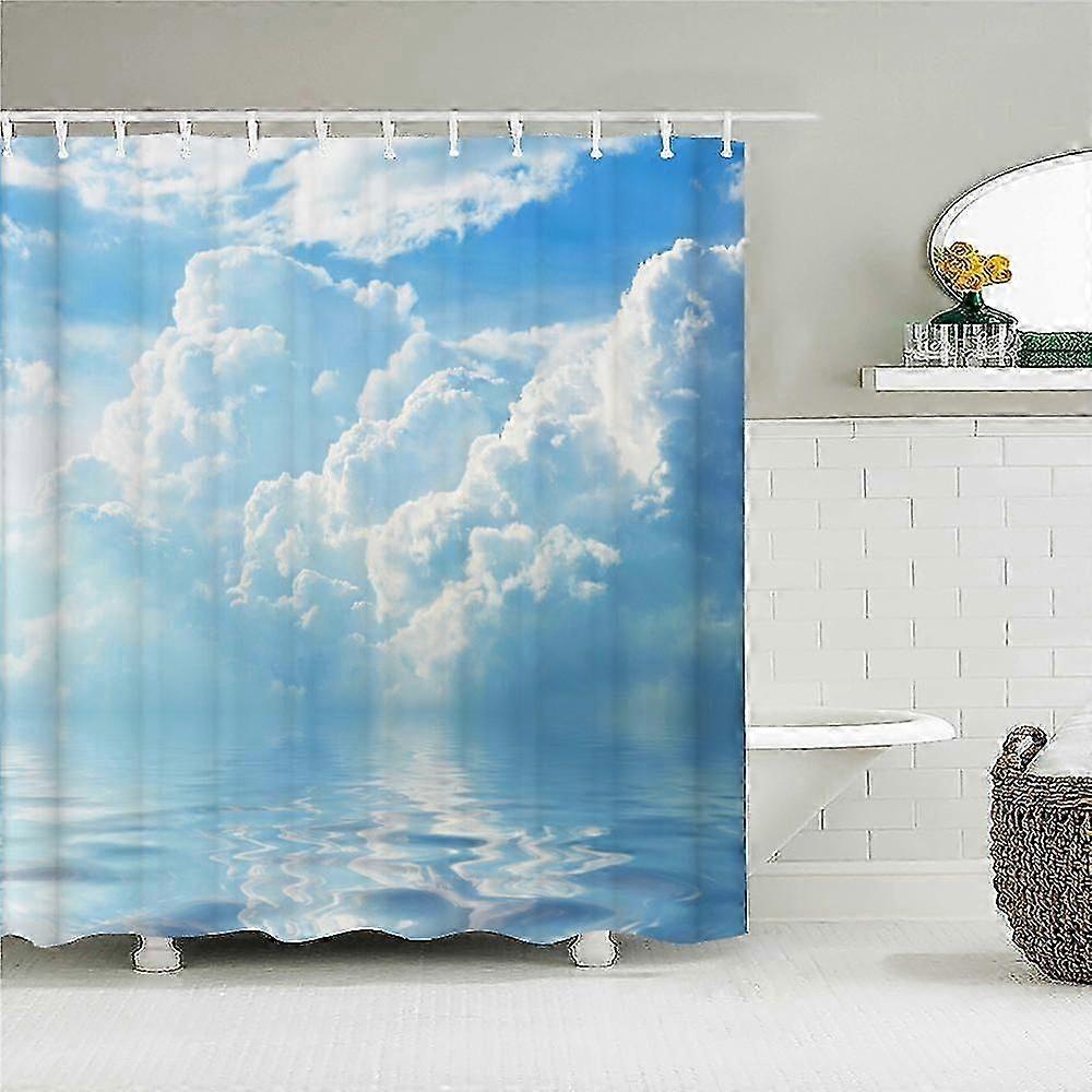 25-26 Home Decoration Waterproof Shower Curtain Curtain Blue Sky White Cloud Landscape Pattern Shower Curtain Shower Curtain-353 /2025 New Style