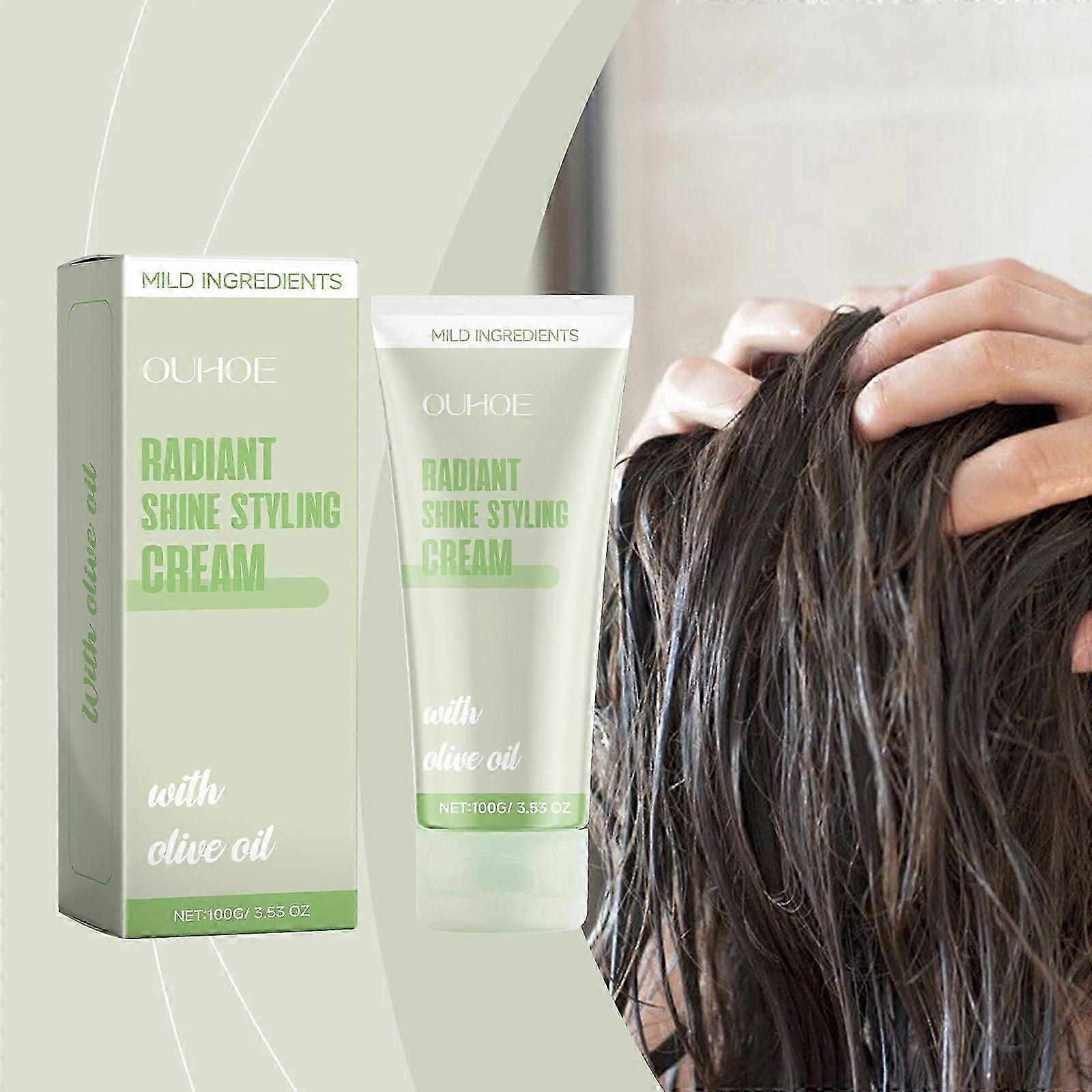 25-26 100g OUHOE Radiant Shine Styling Cream Olive Oil Hair Finishing Cream for Smooth & Glossy Look