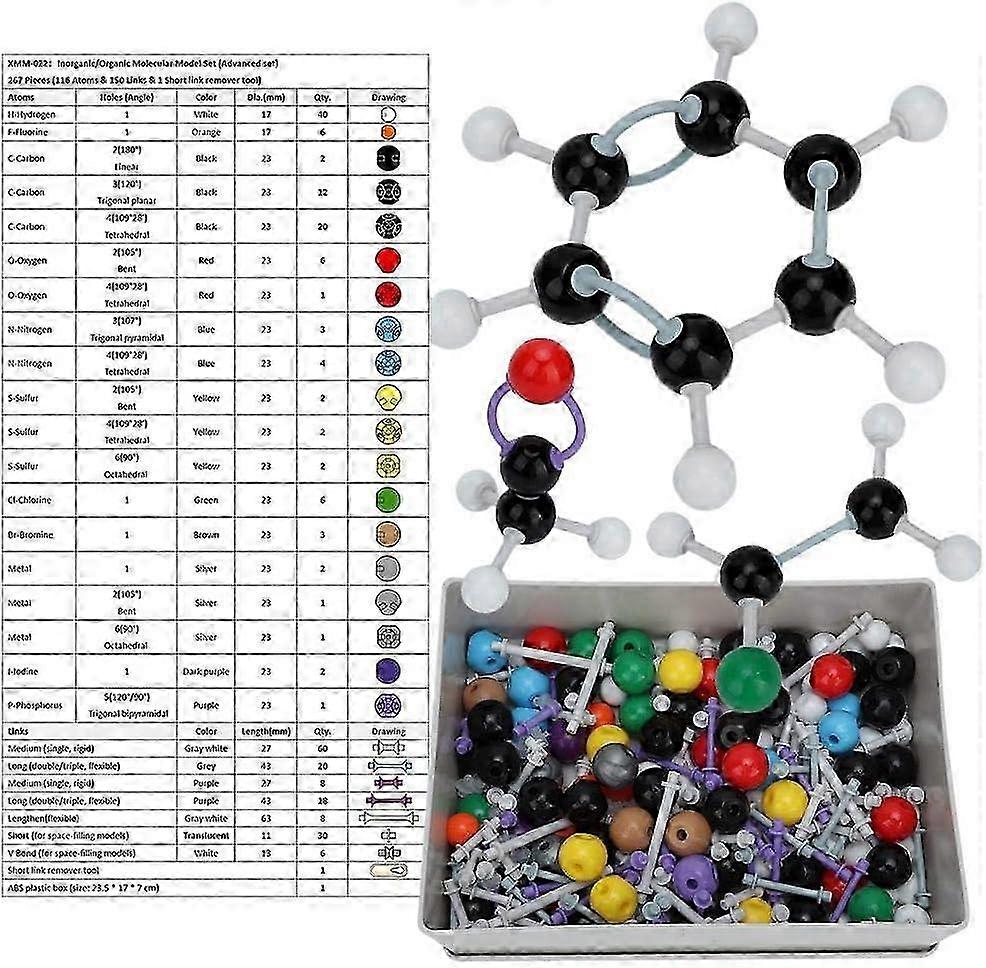 25-26 Molecular Model Kit, 267Pcs Chemistry Molecules Kit Molecular Model Organic and Inorganic Chemistry Molecular Chemistry kit for Teacher Students