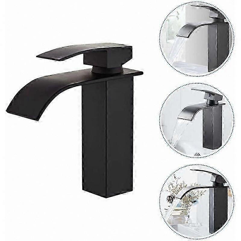 Modern Waterfall Faucet with Dual Inlets, Durable Black Copper Body, Cold & Hot Water Functionality for Bathroom Sink