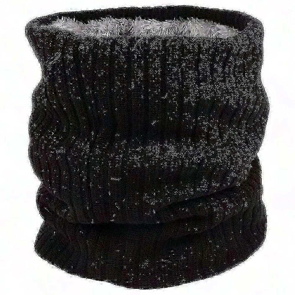 Thermal Fleece Neck Warmer Snood - Thick Knitted Winter Scarf - Soft Polyester Fibre, Black - Perfect for Cold Weather & Outdoor Sports