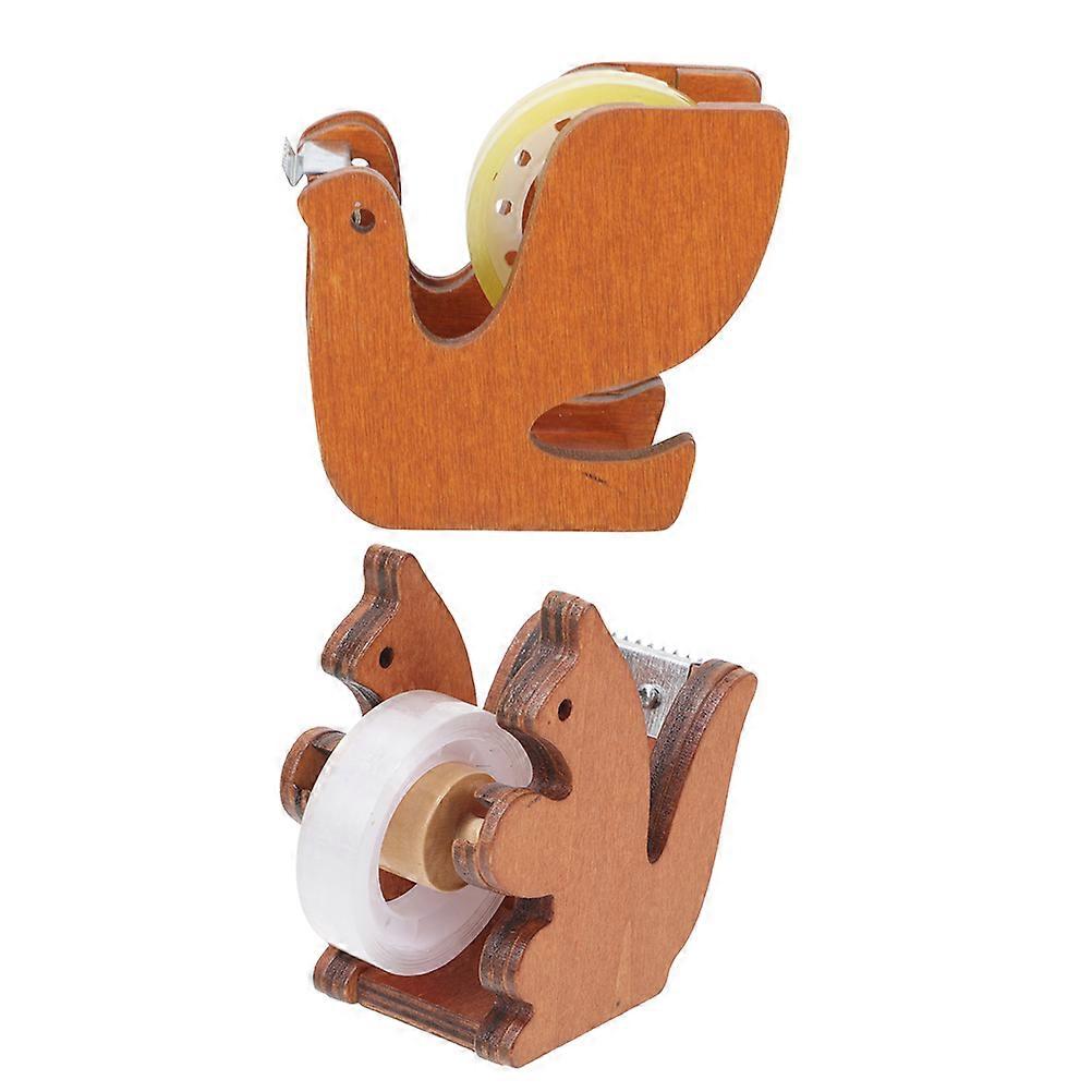 Wood Tape Dispenser for Desk with Convenient Cutter 2Pcs Portable Set