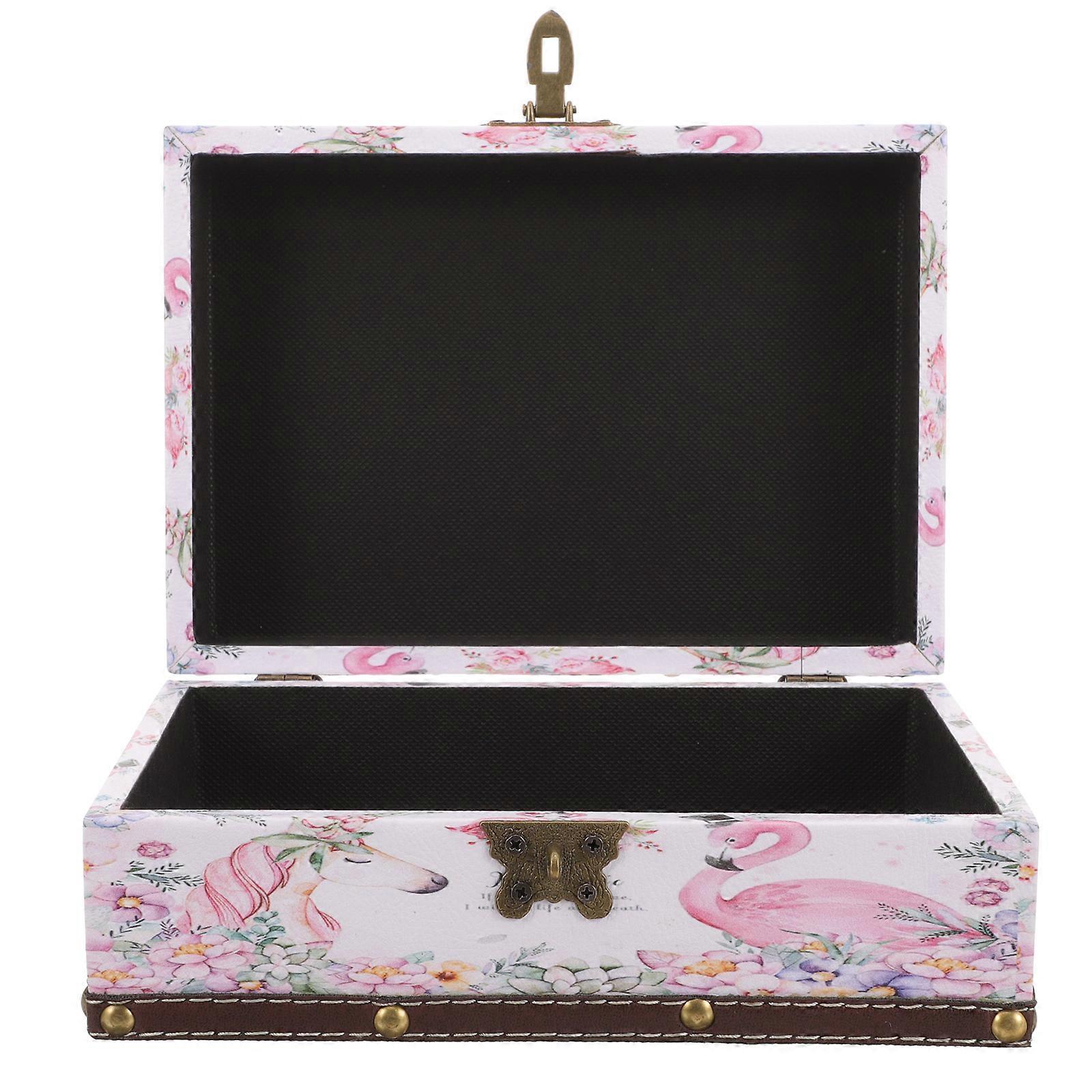 Wooden Box Vintage Trinket Box for Storage 2Pcs with Flamingo Pattern and Lock