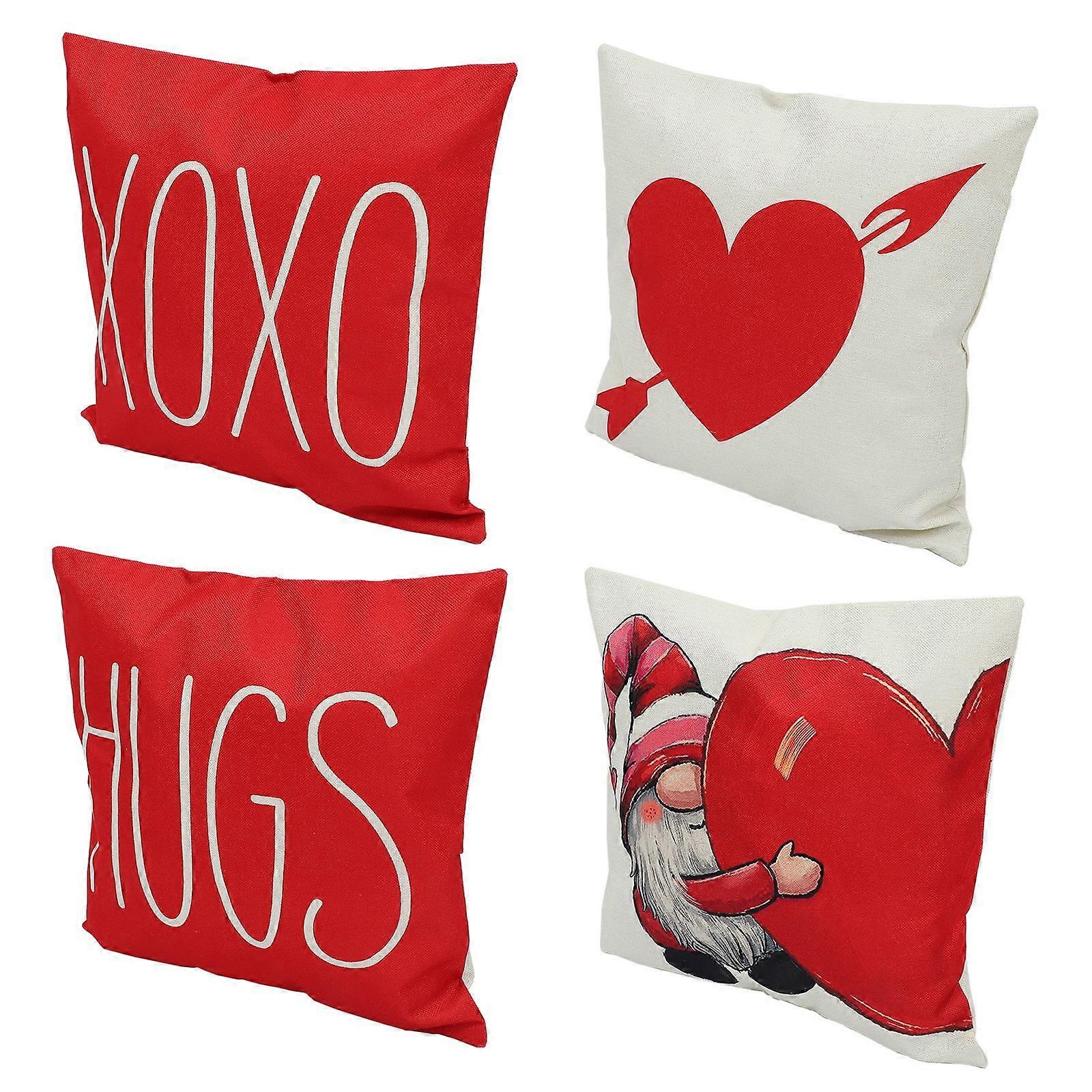 Valentine's Day Flax Pillowcases Romantic Pillow Covers for Home 8Pcs