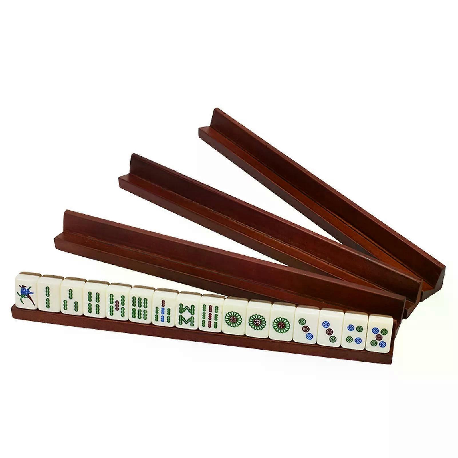 4PCS Wooden Mahjong Game Racks Pusher Stand Mahjong Holder for Entertainment Home Mahjong Games Indoor Activity