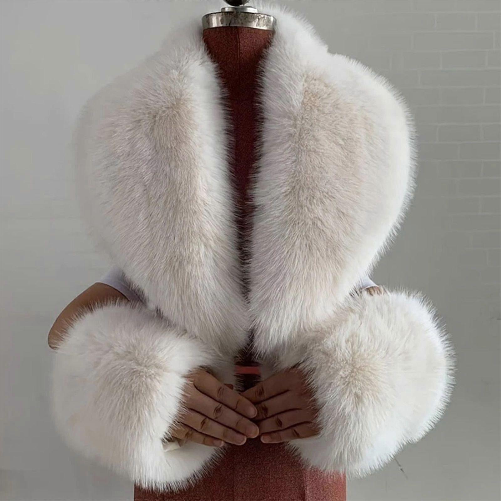 Features 1. Winter neck warm scarf. In cold weather, using our fluffy fur shawl to keep your neck warm and comfortable is the ideal choice for winter. The furry scarf design is not only warm, but also a fashionable accessory that adds the finishing touch to your look. 2. Versatile fashion accessories. The unisex fur collar cuffs add exquisite style to any winter jacket. 3. Convenient dressing. The fur collar cuffs can be easily fixed to the jacket, providing quick and convenient warmth at any time. The back of the collar is equipped with elastic buttons, which can be easily fixed by sewing buttons on the hem of the garment, enjoying the unique fashion and warmth of winter. Specifications Material: faux fur Package Include: 1* Artificial fur collar and cuff set