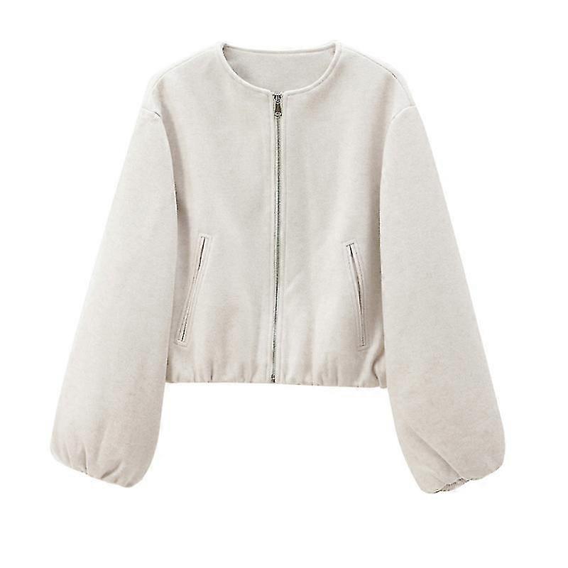 Cropped Bomber Jacket Women Autumn Winter Zip Up Coat,Warm Short Outerwear Long Sleeve Slim Fit in Gray