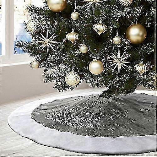 Soft Material: High-quality felt and luxury faux rabbit fur. Soft and comfortable texture. Large Size: Diameter 90 cm (36 inches). Universal fit for most Christmas trees. Premium Craftsmanship: Features elegant embroidery and stitched edges for a refined look. Includes 3 hidden hook-and-loop fasteners for easy installation. Thick, soft, and durable—designed for repeated use. Function: Conceals the tree stand while protecting floors and carpets from pine needles, water, and sap. Versatile Use: Ideal for home Christmas tree decoration in living rooms, weddings, engagements, anniversaries, bars, hotels, supermarkets, gardens, and commercial holiday displays. Features: - 48-inch diameter tree skirt fits most standard Christmas trees. - Adds warmth and festive charm to your holiday setting. - Made from thick, plush faux fur fabric for exceptional softness and durability.