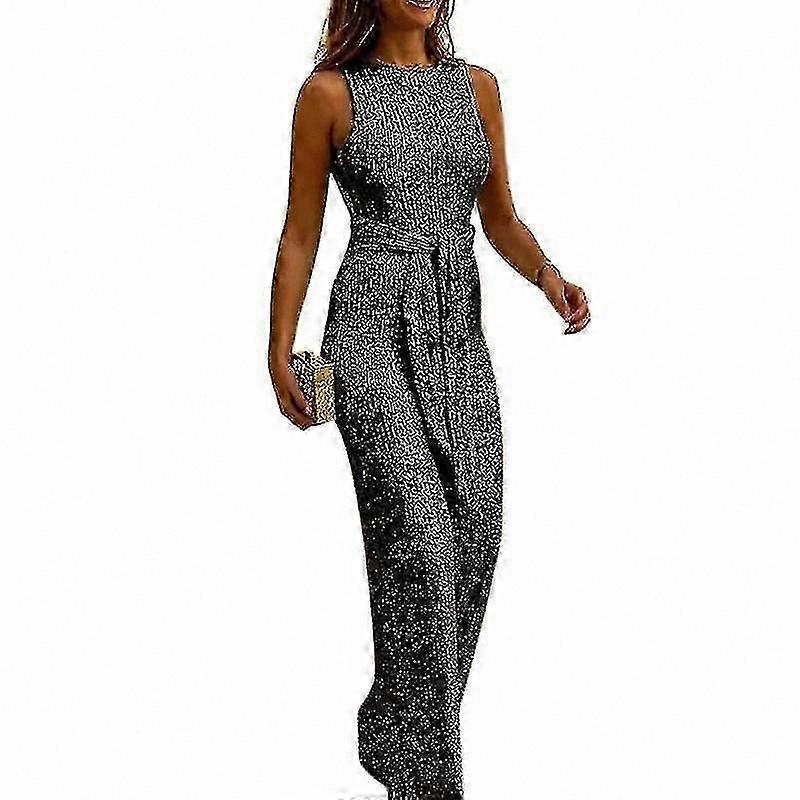 Women's Sparkly Jumpsuit - Elegant Sleeveless Romper with Long Pants & Belt