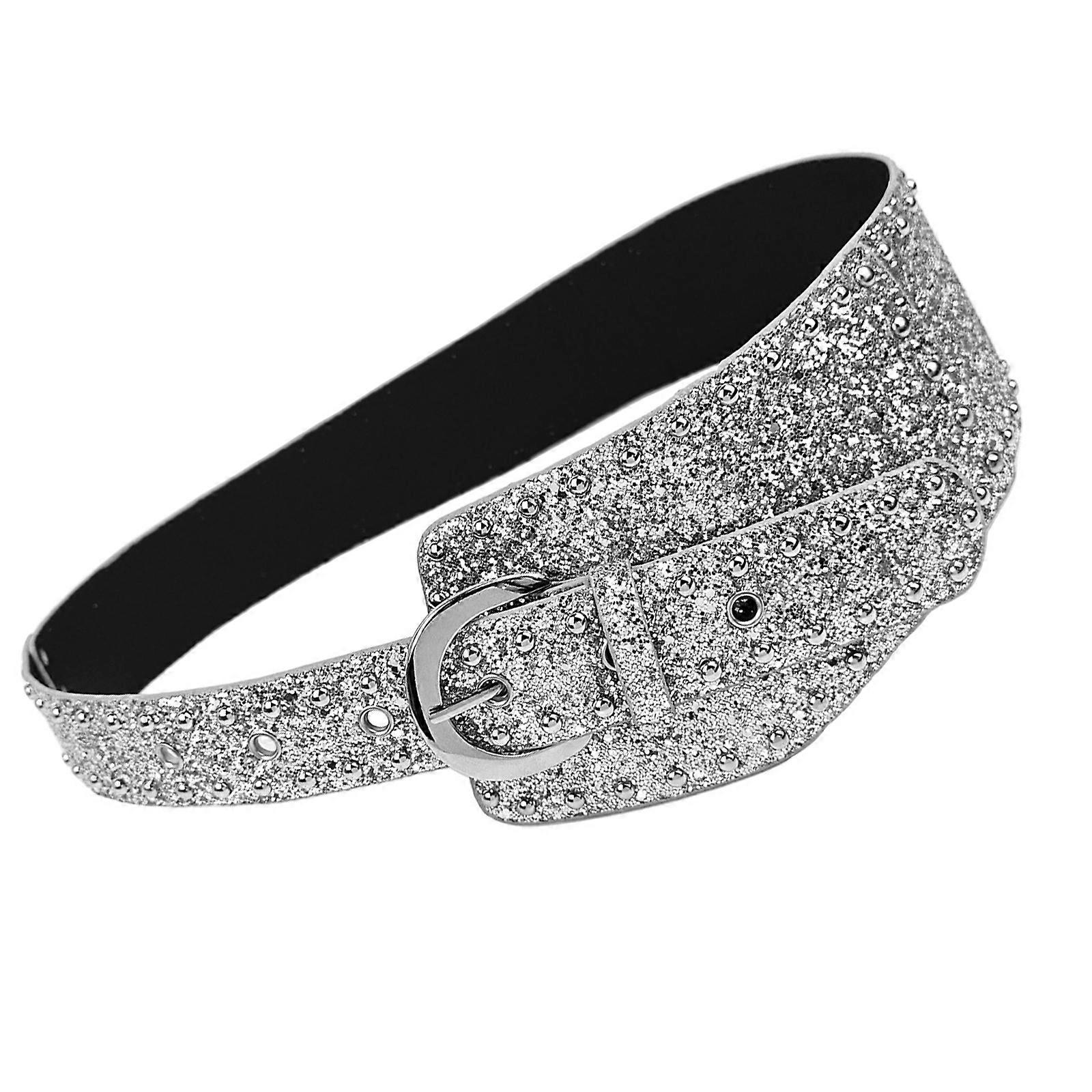 Silver Waist Belt PU Design Sequined Cummerbund Waist Sash for Dresses Tops Outerwear and Women Fashion Statement Multicolor