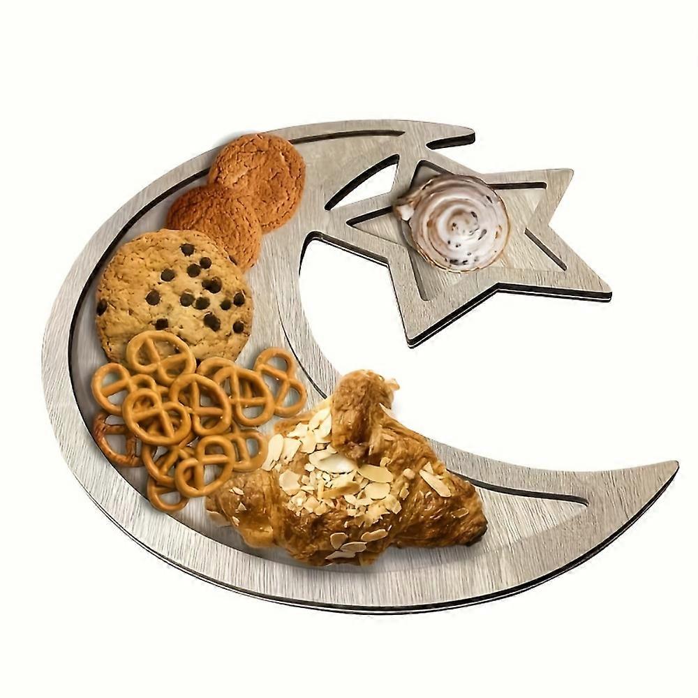 Wooden Moon Star Tray Eid Mubarak Wood Fruit Plate Kids Adults Happy Ramadan Kareem Party Decoration